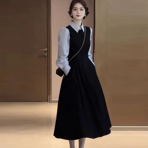 휠렉스 여성 셔츠원피스 2종 세트 레이어드 롱원피스 A라인 오피스룩 하객룩 JT185