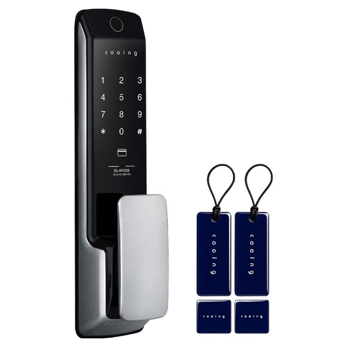 쿠잉전자 손잡이 있음 지문인식 푸시풀 디지털 도어락, DLHY03S, 방문설치